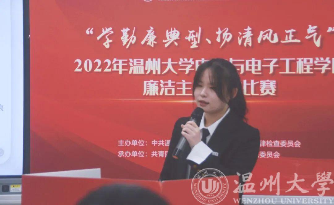 为深入学习贯彻党的二十大精神,持续推动党史学习教育走深走实,引导广大学生学习老一辈革命家、优秀共产党员艰苦奋斗、清正廉洁的品格,助推“清廉温大”建设,博彩平台 于2022年11月23日晚在南校1A-203举行第三届“学勤廉典型,扬清正风气”主题演讲比赛。本次比赛由博彩平台 党委副书记曾蓓蕾、博彩平台 学工办辅导员潘龙飞、余明新、陈海彤、屠昌浩老师担任评委。程佳聪同学主持,各班代表现场参与此次活动,2022级全体新生线上观看了比赛。