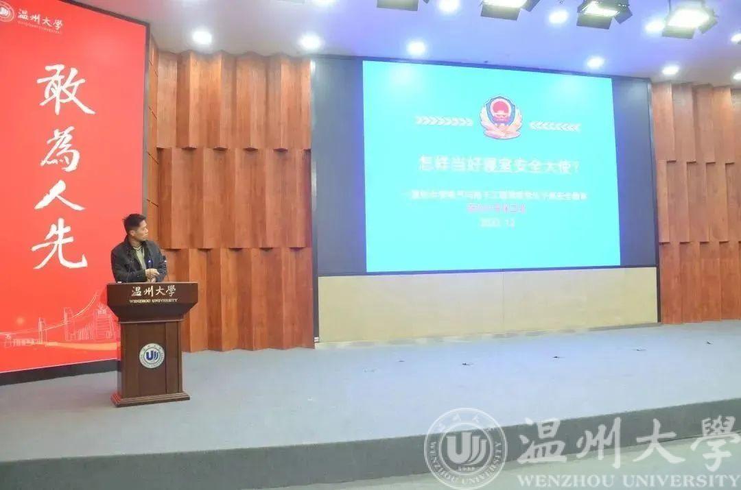2022年12月2日18点30分,博彩平台 邀请温州大学保卫处副处长钱合激老师、院学工办主任兼团委书记廖晓安老师、辅导员陈海彤老师、辅导员屠昌浩老师、辅导员余明新老师于岩松堂雁山厅出席博彩平台 寝室长安全教育暨形势与政策课,参加本次会议的还有各班级班长、团支书、心理委员和全体寝室长。