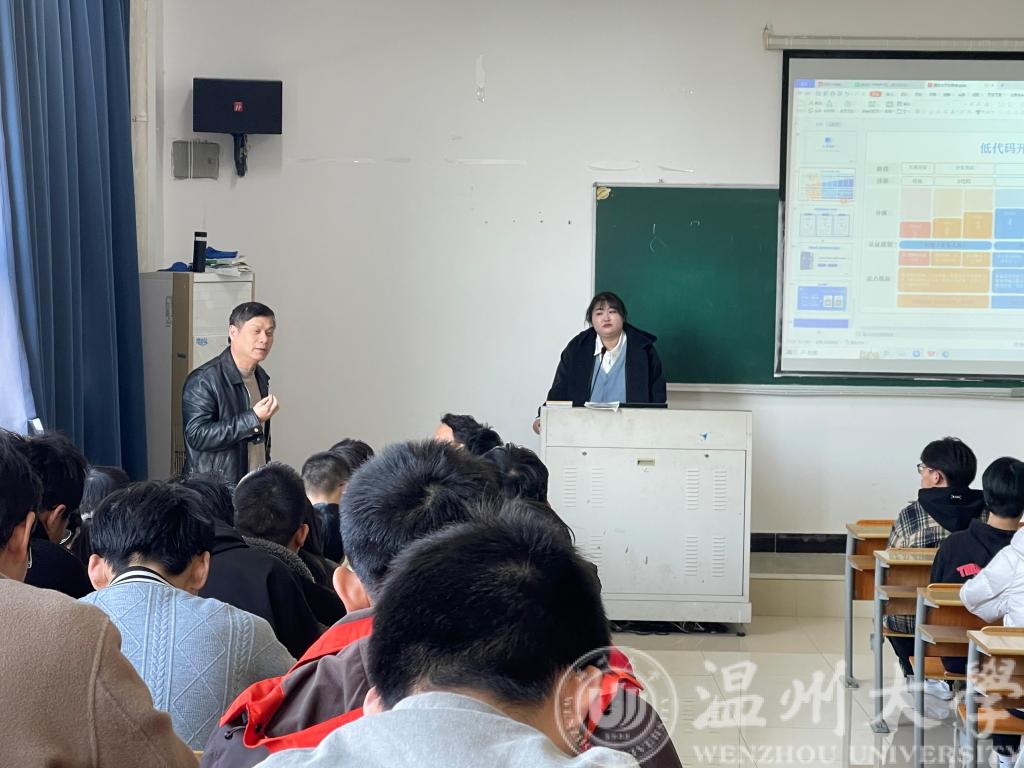 2023年2月26日下午14:00,博彩平台 在1B402教室成功举办了职场竞争力提升计划——钉钉宜搭低代码交流会活动。钉钉宜搭高级讲师欣鑫、博彩平台 电气系教师吴烈、实验中心教师王环、辅导员屠昌浩以及博彩平台 21级和22级的学生参与了本次交流会。