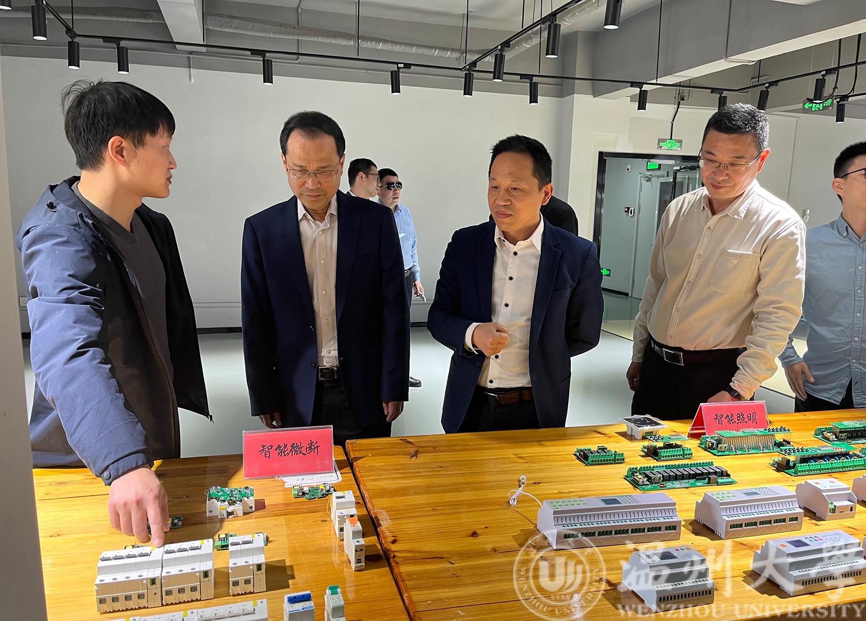 陈作荣一行对研究院实验室建设及电气智能化产品等成果表示高度肯定与期许,强调研究院要强化自身平台建设、充分发挥功能作用,助力中小企业提升科技创新能力和水平;要精准引才、用心育才,优化人才政策滋养高层次人才队伍;要进一步发挥以温州大学科研团队为核心力量的人才资源优势,聚焦产业重大技术创新需求,推动高校科技创新与成果落地,不仅要“让书本进入市场,”而且要“在市场迅速推广”。
