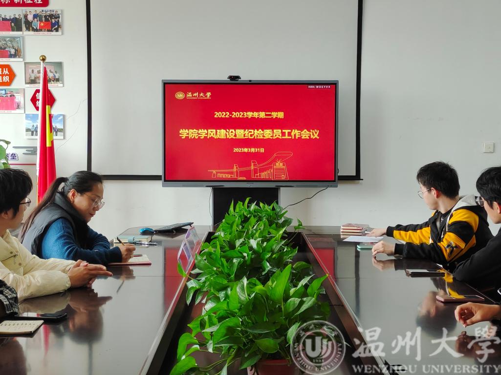 2023年3月31日中午12:30,博彩平台 于1A-512召开2022-2023学年第二学期学风建设暨纪检工作会议。参与此次会议的有博彩平台 党委副书记曾蓓蕾、院学风负责辅导员陈老师、团委学生会学纪部及各班纪检委员。