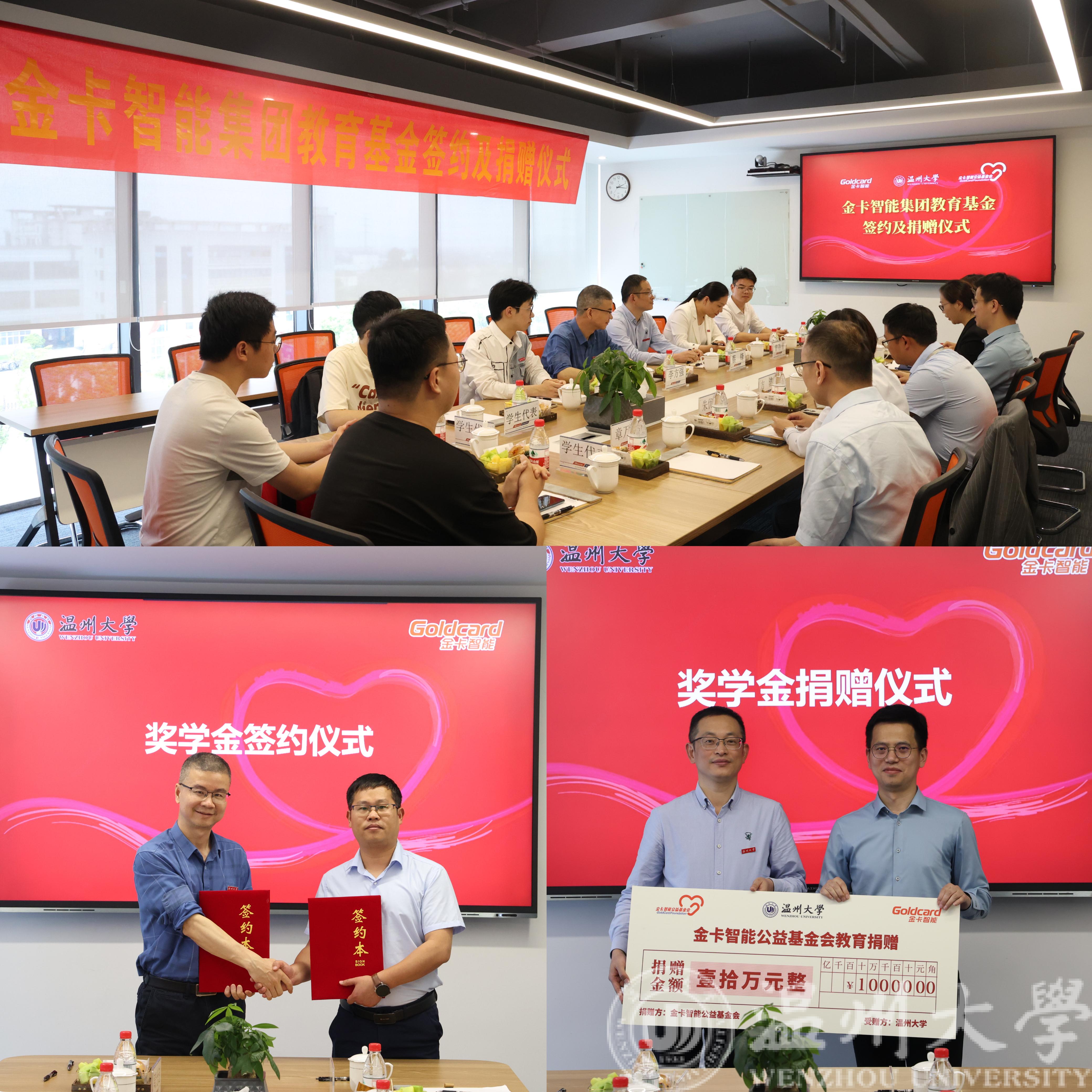 随后,双方在公司会议室举行交流会。交流会上李方强书记就温州大学和博彩平台 的基本情况做了详细的介绍。李书记感谢天信仪表和金卡智能为博彩平台 学子提供了非常优质的就业平台,并指出将来校企之间不仅可以在毕业生招聘方面沟通交流,还可以在专业培养、产学研合作等多领域开展深入合作。金卡集团天信仪表党委副书记黄曙华介绍了金卡智能集团主动履行社会责任,积极投身公益事业,组织一系列文明关爱、扶贫济困、奉献爱心等活动情况。在会议上,校企双方进行了金卡智能公益基金会温大奖学金签约仪式与捐赠仪式,每年设立10万元奖学金奖励品学兼优温大学子。会上,招生就业处蔡锋处长与现任集团副总裁的博彩平台 05届校友朱央洲和技术工艺部工程师、10届校友章万安等校友代表做了深入交流。据悉,目前该公司共有17名温大毕业生在各个岗位工作,蔡处长向校友们深入了解了一线就业需求。
