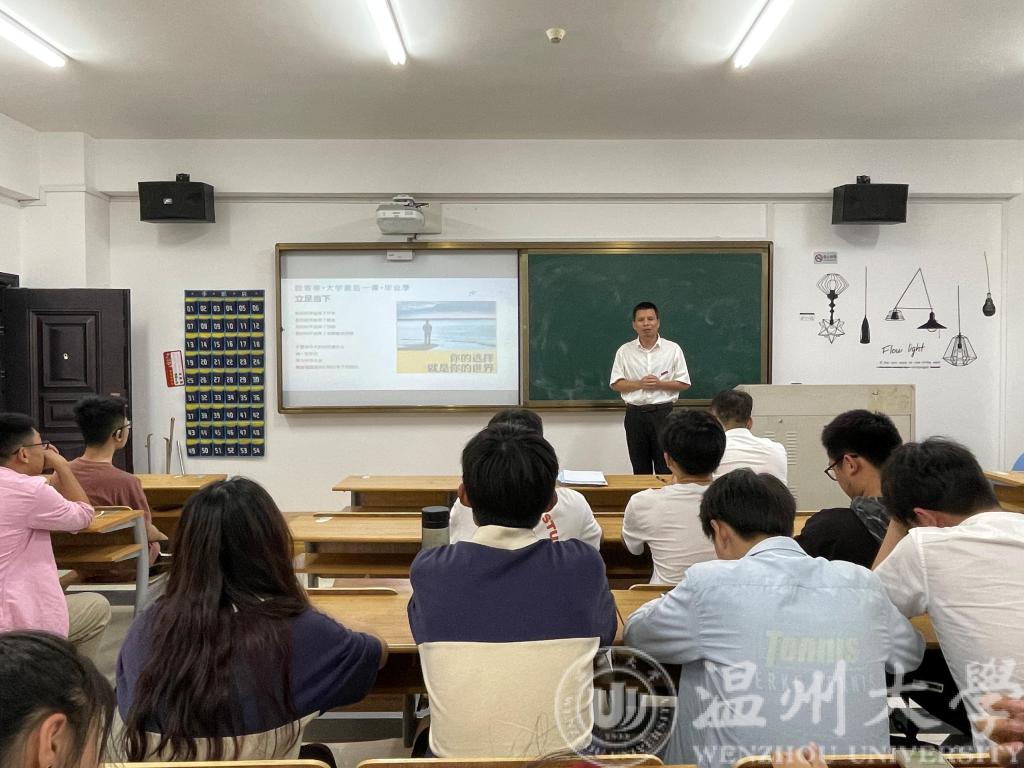 2023年6月19日下午3:30,在2023届毕业生即将告别温大校园之际,博彩平台 领导班子集体下班级,同毕业班班主任一道为毕业生上好最后一堂课。为做好本次毕业生教育,博彩平台 前期认真策划,精心组织,领导们围绕“立足当下,肩负青年时代使命”、“继续成长,树立终生学习意识”、“心怀感恩,培养优秀人格品质”、“展望未来,求学问是敢为人先”四个主题,分赴各个毕业班级,给毕业生们带去了尊尊嘱咐,勉励毕业生们,要听党话跟党走,勇于担当历史使命;要把劳意识形态关,坚持马克思主义信仰;要勤磨砺恒自律,提高能力本领;要懂感恩爱生活,成就精彩人生;要牢记温大校友身份,不忘校训院训,传承温大精神,在新的征程中继续发光发热,绽放最的青春。