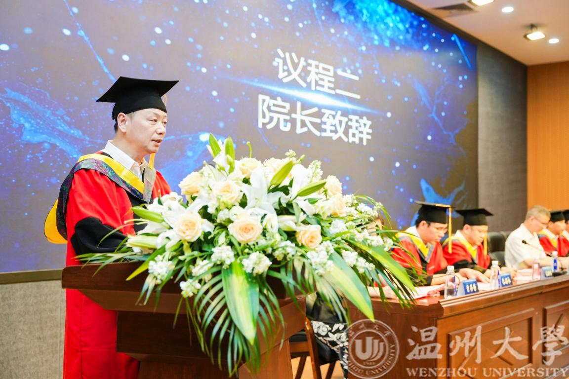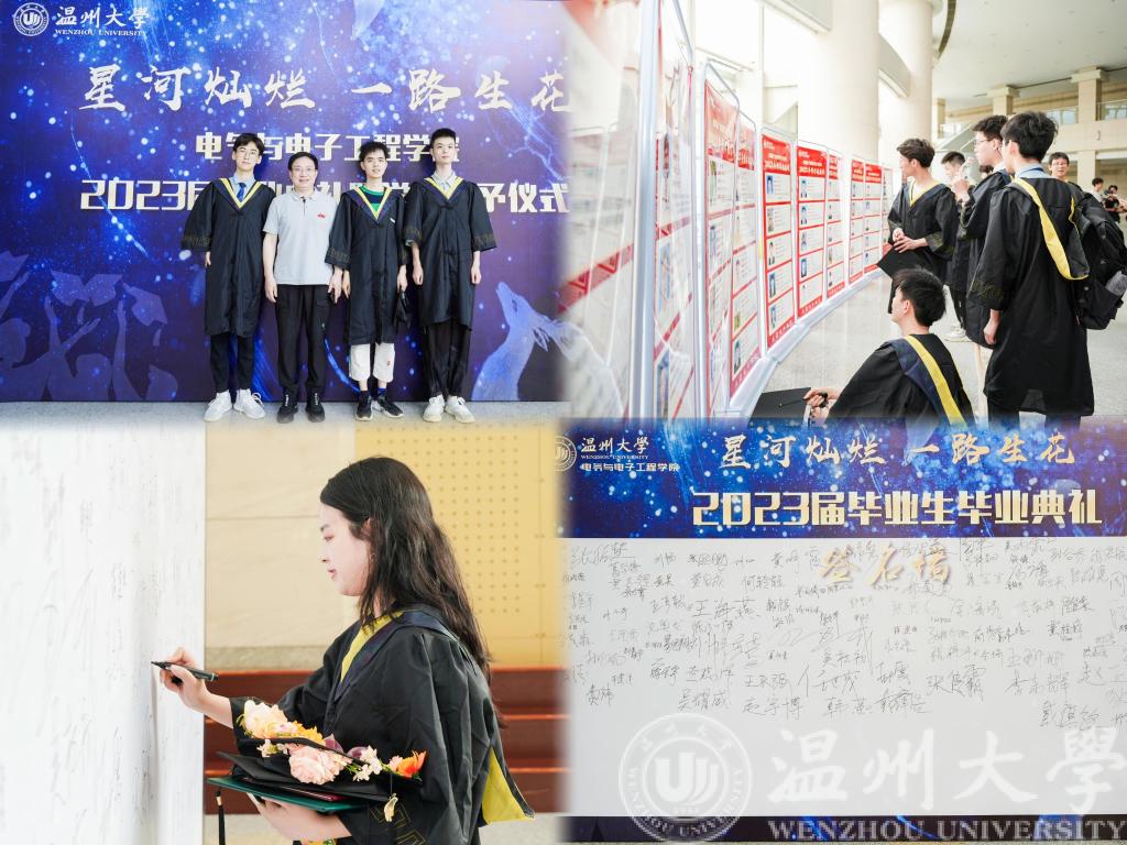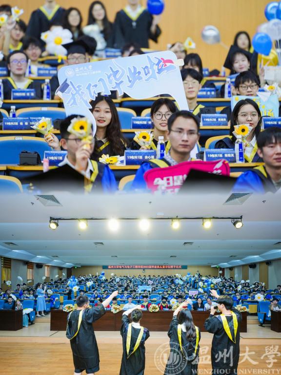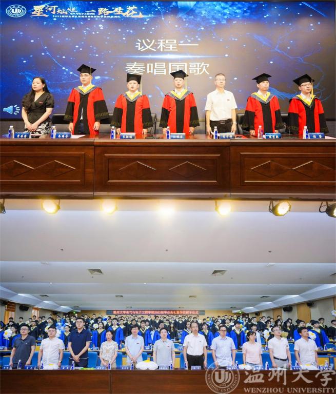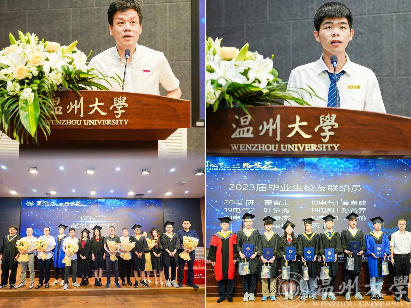 栀子花开时,正是拨穗正冠时。6月19日上午10点,博彩平台 2023届毕业生毕业典礼暨第四届聚创奖学金颁奖典礼于温州大学南校区岩松堂步青厅圆满举行。出席本次毕业典礼的有博彩平台 院长汪鹏君,党委书记李方强,副院长朱翔鸥、陈孝敬、朱海永、张鉴,党委副书记曾蓓蕾,浙江聚创智能科技公司董事长、博彩平台 聚创奖学金发起人吴桂初先生,电气系支部书记张正江,电子系支部书记管晓春,电子系主任庄友谊,电气系主任吴平,毕业班各班班主任,学工办全体辅导员,以及2023届本研毕业生。