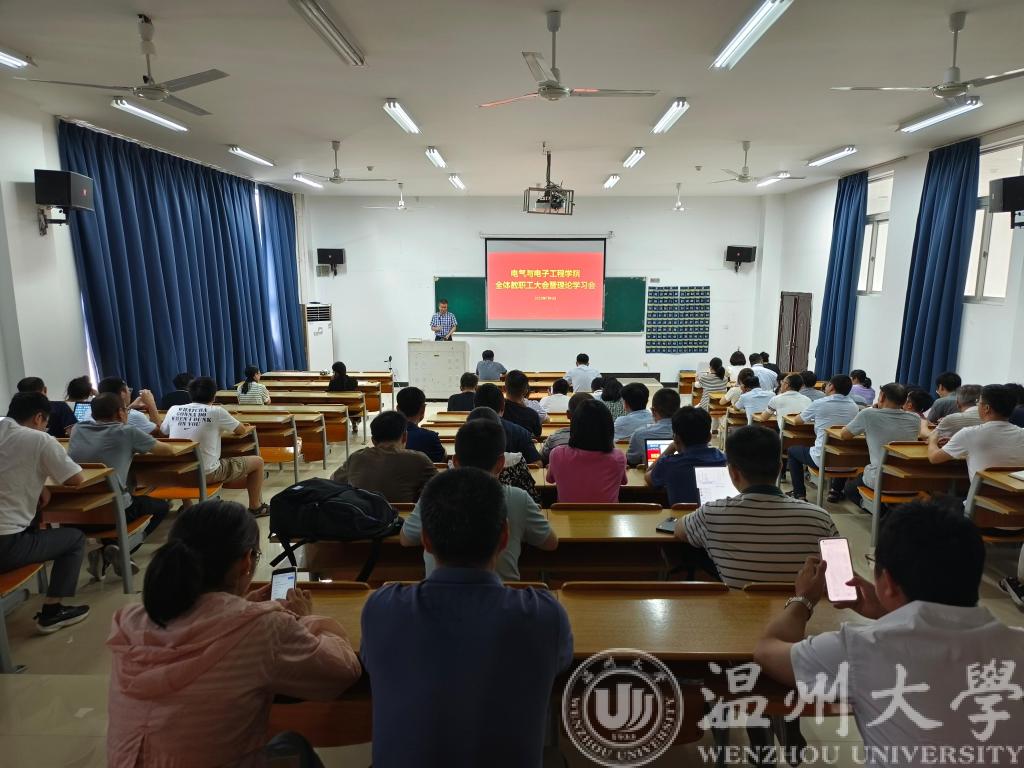 7月4日下午,博彩平台 召开全院教职工大会暨理论学习会,会议由博彩平台 党委书记李方强主持,全院教职工参加会议。