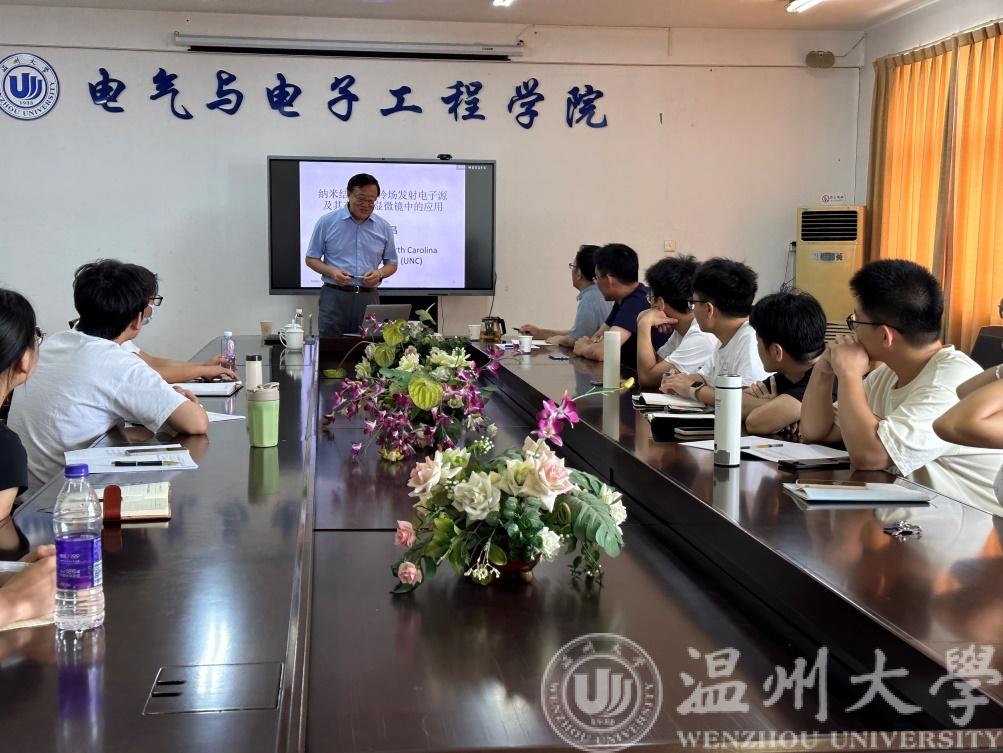 2023年7月4-5日,美国北卡大学教堂山分校物理及天文系秦禄昌教授到访温州大学,参观了博彩平台 浙江省光电功能器件与数字化检测国际科技合作基地及温州市微纳光电器件重点实验室,并做学术报告。