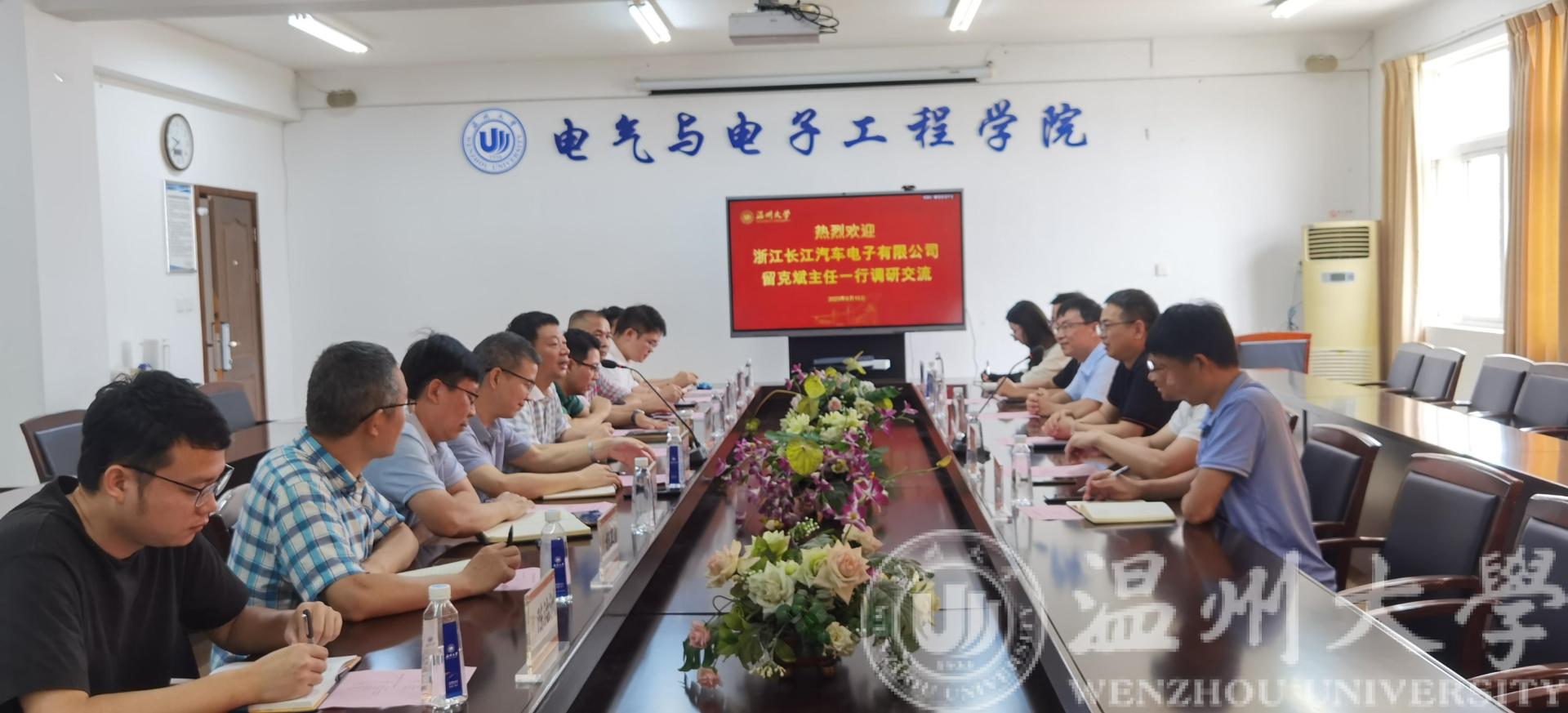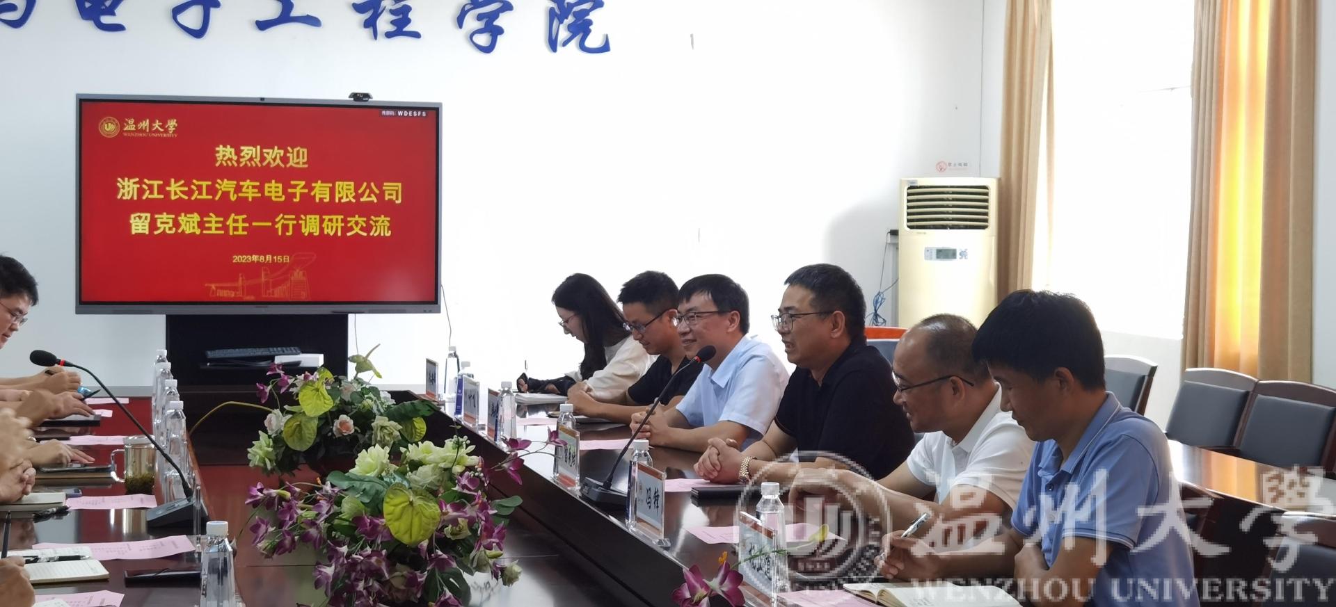 8月15日上午,浙江长江汽车电子有限公司研发部主任留客斌、人力资源总监冯锋等一行来博彩平台 访谈交流校企合作。博彩平台 汪鹏君院长、李方强书记及骨干教师参加了交流会。
