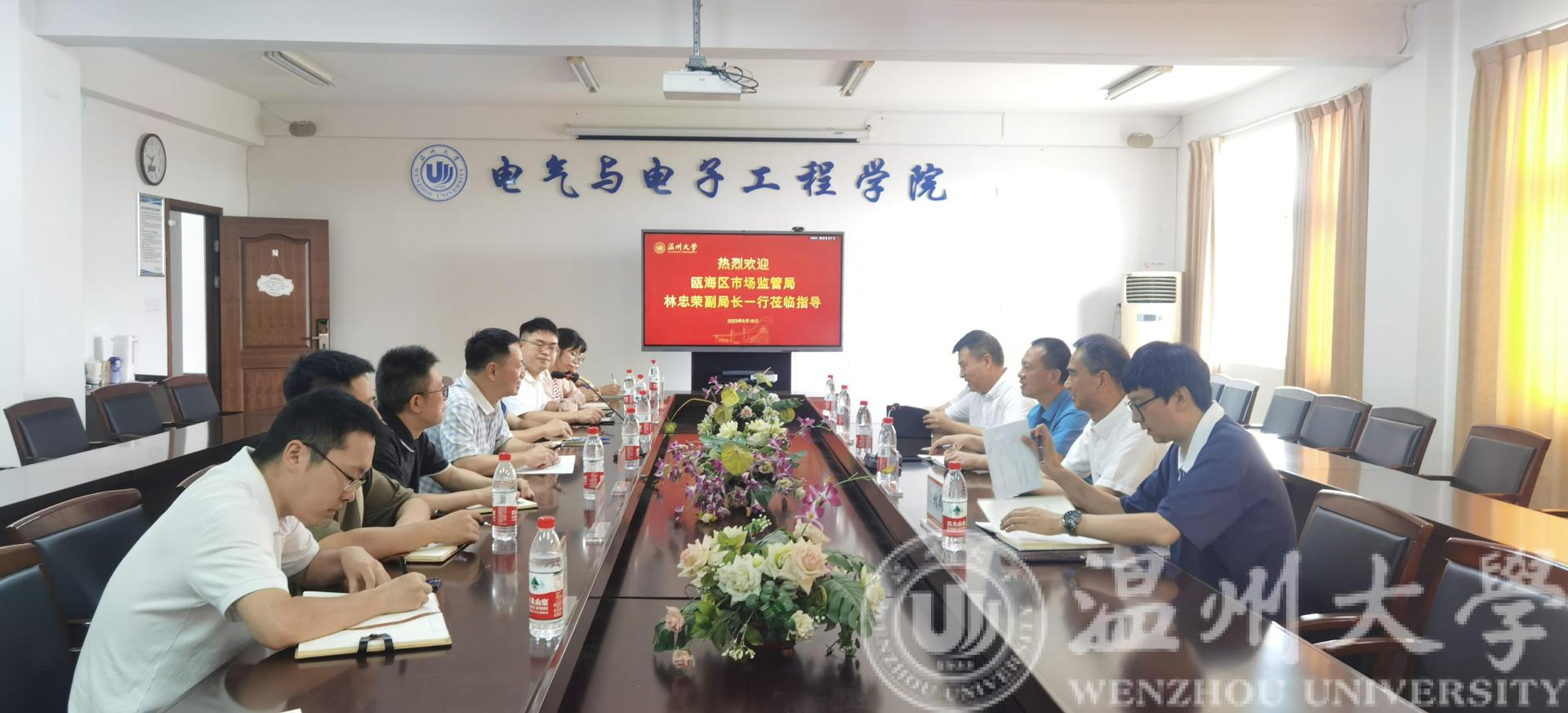 8月18日上午,瓯海区市场监管局林忠荣副局长一行莅临博彩平台 开展知识产权“产学研”交流工作。座谈会由院长汪鹏君主持,院长助理张鉴教授以及骨干教师出席。