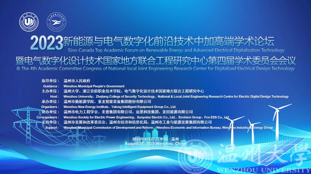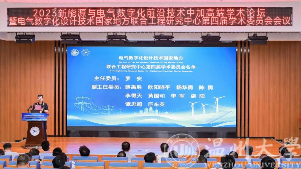 8月27日,由温州大学、浙江安防职业技术博彩平台 和电气数字化设计技术国家地方联合工程研究中心联合主办的2023年新能源与电气数字化前沿技术中·加高端技术论坛暨电气数字化设计技术国家地方联合工程研究中心第四届学术委员会会议,在温州成功举办。17位中外顶尖人才及数百位专家学者,通过线上线下相结合的方式参加了会议,共同探讨新能源前沿技术及产业的发展。温州市副市长王振勇莅临大会指导并致辞。