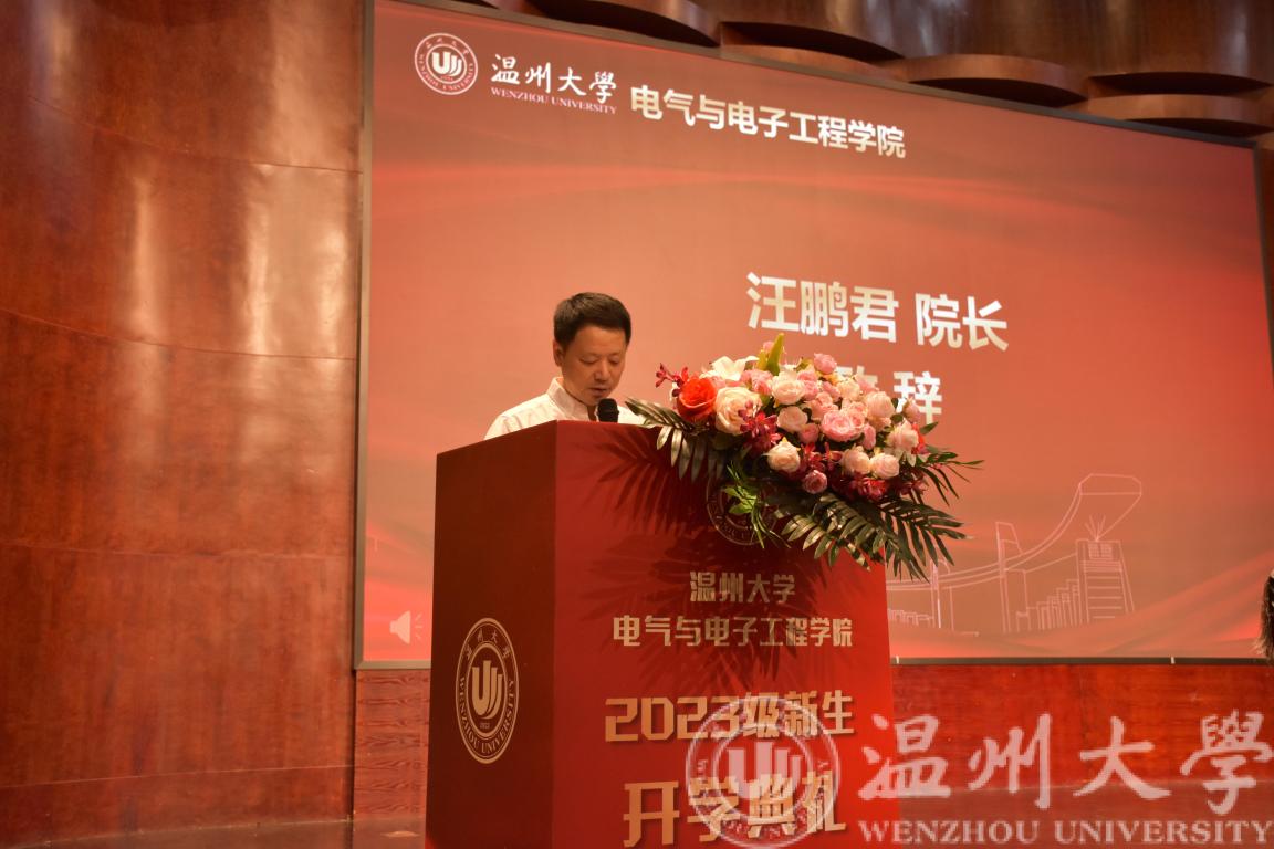 汪鹏君院长代表博彩平台 致辞。他对2023级本科及研究生新生们加入博彩平台 大家庭,表示热烈的欢迎。紧接着,介绍了博彩平台 在专业建设、培养目标和博彩平台 发展等方面的基本情况。同时,汪院长用三句话勉励新生们,即“青年要有目标、有追求、勤奋而踏实、不负青春”“进入大学,要注意学习方式的转变”“与人相处之道:学会尊重、宽容、沟通和交流”。他希望全体新生不仅仅需要掌握专业知识和技能,还需要有健全的人格、创新的精神、扎实的态度以及社会责任感和团队协作能力。最后,他衷心地祝愿各位新生四年大学生活充实、精彩而富有意义。