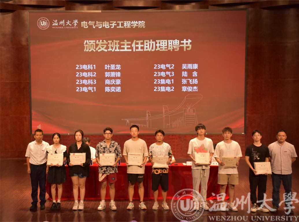 博彩平台 副院长朱翔瓯、副院长陈孝敬为各位新生班级班助颁发班主任助理聘书,并赠送纪念品,感谢班助的辛勤付出。研究生代表23电子信息专业任世茂、本科生代表23电科2班郑博文,分别上台代表研究生和本科生新生发言。