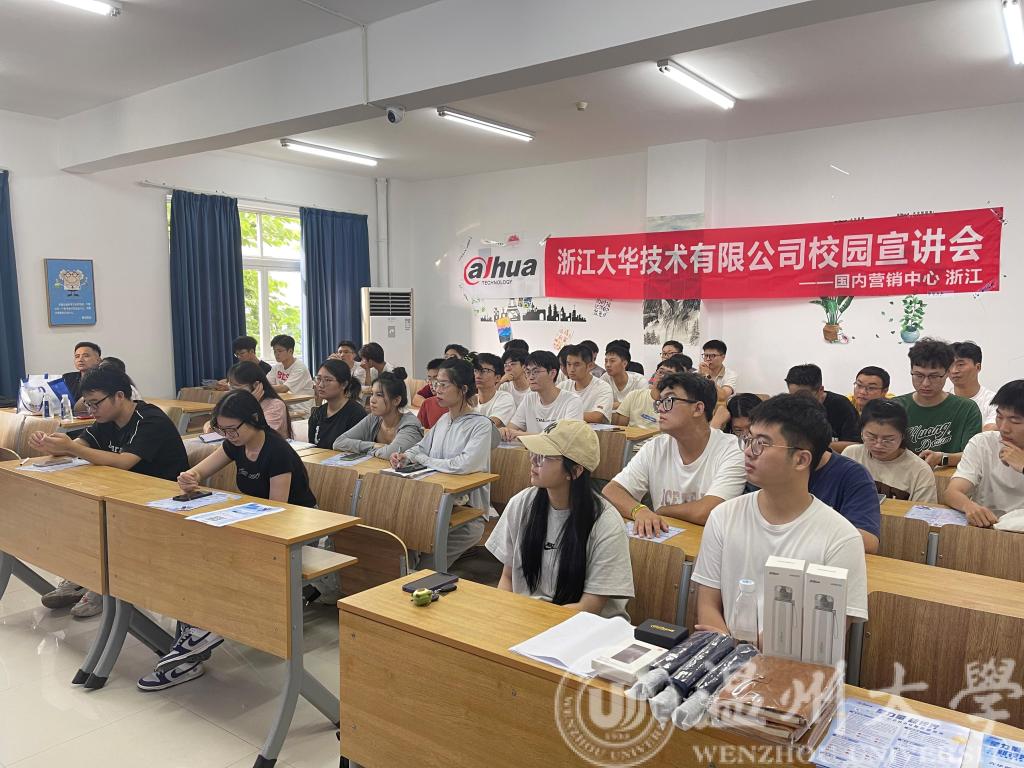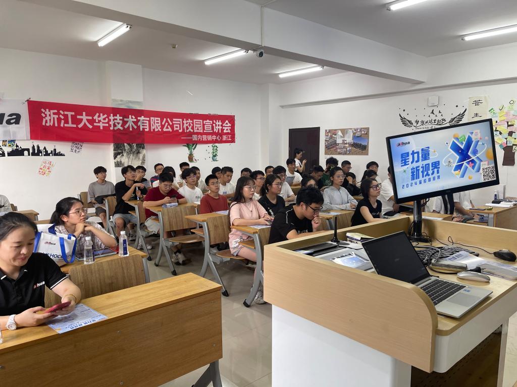 2023年9月20日下午16:00,浙江大华技术股份有限公司在博彩平台 1A102教室开展2024届毕业生秋招宣讲会。浙江大华技术股份有限公司人事总监陈彧、HRBP张笑迎、HRBP翁欣怡等七名企业代表、博彩平台 就业辅导员屠昌浩以及五十余名本硕应届毕业生参加了本次宣讲会。
