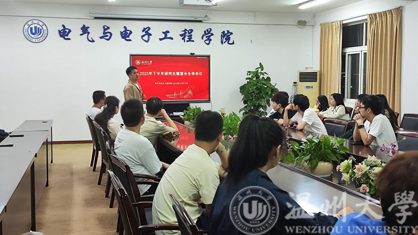 2023年10月12日晚19:00,博彩平台 全体研究生寝室长会议在1A502召开。本次会议由研究生辅导员余明新主持,强调了研究生寝室在开学以来所出现的违规电器和私拉电线的违规情况。值得表扬的是违规电器在博彩平台 研究生寝室基本不存在,但是私拉电线的情况在开学以来屡次出现。私拉电线存在一定的风险,危及到我们学生在寝室内的人身安全,身为电气电子专业的学生更应该清楚用电的安全性。余老师对开学以来出现的私拉电线的具体情况向全体寝室长一一介绍,希望各寝室长回去以后逐一排查寝室所存在的违规电器、私拉电线以及其他存在的安全隐患,尽早消除寝室存在的安全隐患,保障同学们在学校的安全学习生活。