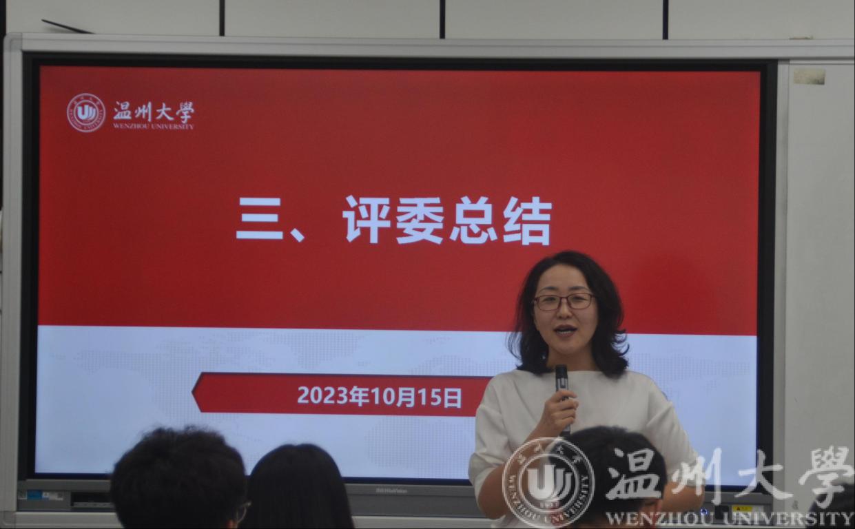 所有选手展示完毕后,朱丽莉老师作为评委代表总结发言。她赞扬了博彩平台 大一新生踊跃参赛的热情,并建议同学们不要拘泥于模板,既要仰望星空,又要脚踏实地:首先,同学们的职业规划要能结合经济社会发展的需要,要有情怀;其次,同学们对目标职业要有充分的了解;最后,职业规划大赛作为一项比赛,同学们要注重一些外在的要素,例如着装、PPT等。