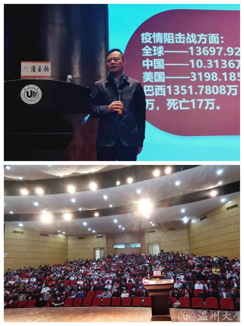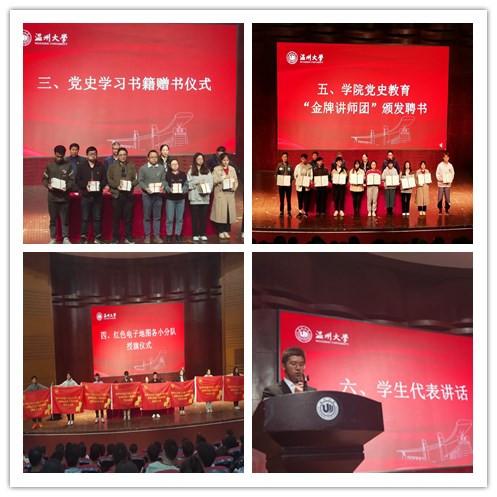 为更好的帮助大家“学党史·忆初心”,启动仪式上邀请到温州大学党委委员、宣传部部长潘玉驹教授为大家开讲党史学习教育第一课,他讲课的主题是《从百年党史中汲取奋进的力量》。潘玉驹教授通过一个个生动的党员小故事,如:“半条棉被”让大家身临其境地感受党的无私精神;通过几组发展数据展现了党在改革开放以来所取得的卓越成绩;通过一系列历史事件表明了党带领下的中国实现的伟大突破。潘教授的讲座深入浅出让同学们对党史有了更加深刻的认识,意义非凡。