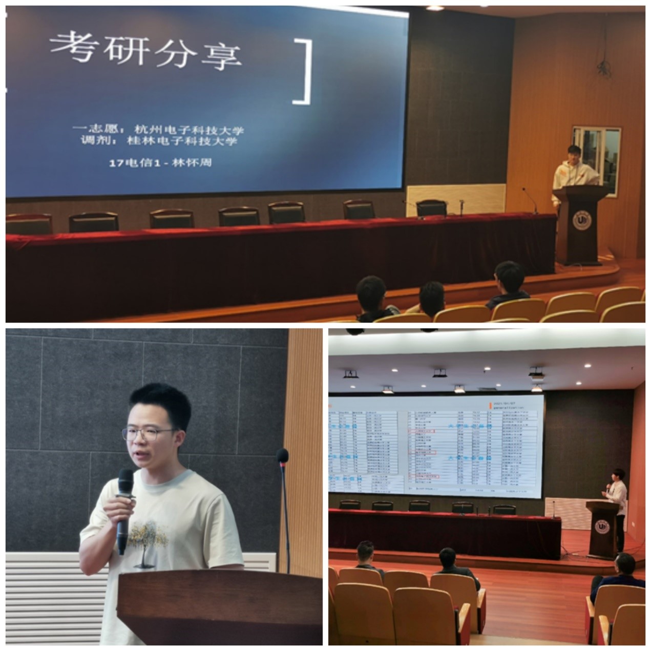 分享会上,八位同学针对电科和电信专业分别从学校选择、专业课资料获取、英语数学政治复习、专业院校选择、时间管理安排等方面进行展开,重点回答了不同院校电科和电信专业的区别、相关专业课准备等问题。在分享过程后,同学们认真聆听,并且向师兄师姐们提出了自己的疑惑,“不同学校的专业优势”“考研时间的安排”“如何获取更多考研信息”等问题一一得到了学长学姐们的解答,最后学长学姐们也表达了对学弟学妹的祝福以及对学校的感谢。