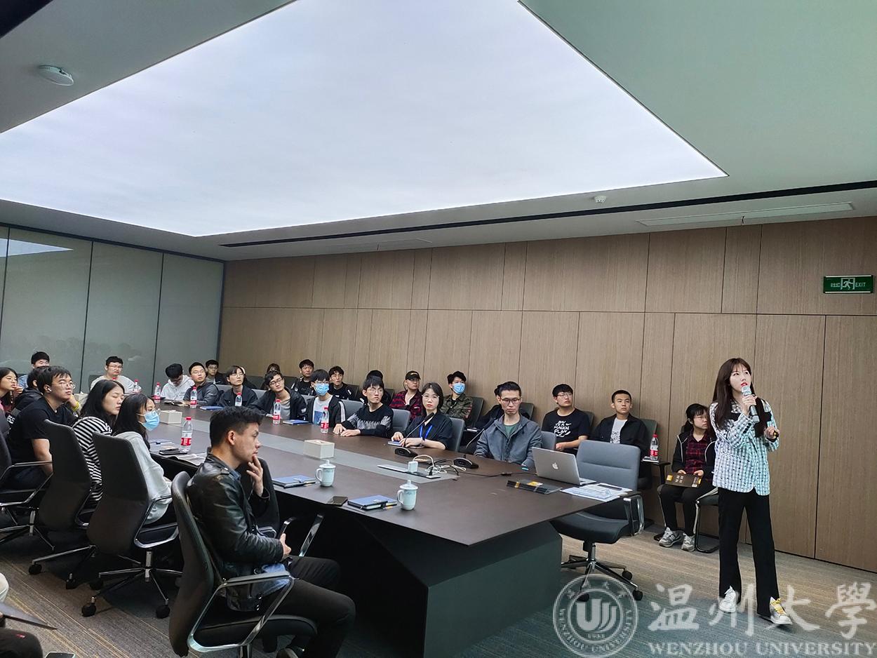 随后,软件工程师助理李媛婷进行就业分享。李媛婷2020年从温州大学毕业,加入钟铮成为其中的一员,她和同学们分享了自己在钟铮这一年的工作经历及个人成长,并基于自己在学校掌握的专业知识和经验阐述其在产品上硬件及软件的应用,让同学们更加明确和清晰了自己未来努力的方向。