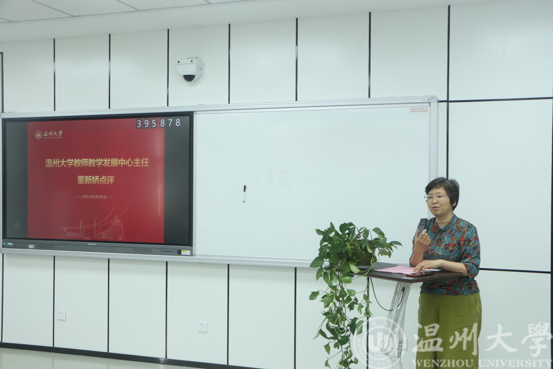 温州大学教师教学发展中心主任董新娇老师宣布比赛结果,并进行了点评,她充分肯定了博彩平台 本次教师教学竞赛的各项工作。她认为,电气博彩平台 高度重视教师教学技能的提升,连续几年举办教师教学竞赛,组织充分、准备到位;竞赛教师精神风貌俱佳、专业知识扎实、讲解清晰、新的教学理念和教学方法运用合理,并融入了思政元素,极富感染;同时,董老师也从时间掌控、教学设计、教学过程等方面给老师们提出了更加殷切的建议。