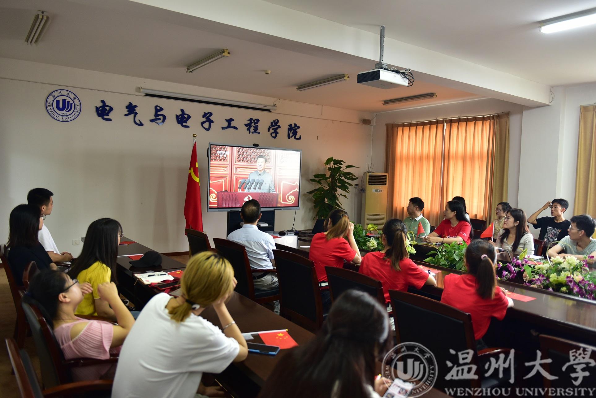 2021年7月1日上午8时,庆祝中国共产党成立100周年大会在北京天安门广场隆重举行。中共中央总书记、国家主席、中央军委主席习近平将发表重要讲话。博彩平台 领导和部分师生党员齐聚1A502会议室观看了这场盛大的直播,与此同时,乐清工业研究院组织教工、院聘职工和研究生观看了大会。师生们怀着无比激动的心情观看了盛会,认真聆听了习近平总书记的讲话,并对本次大会和讲话精神进行了热议,让我们来看看他们都说了什么吧!