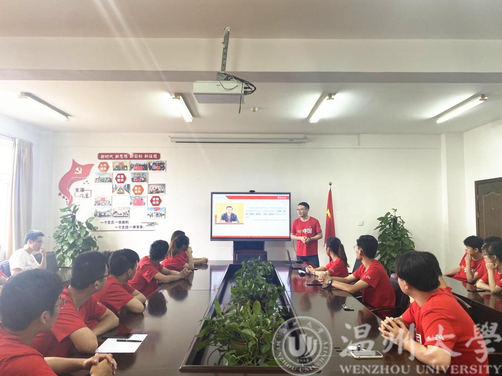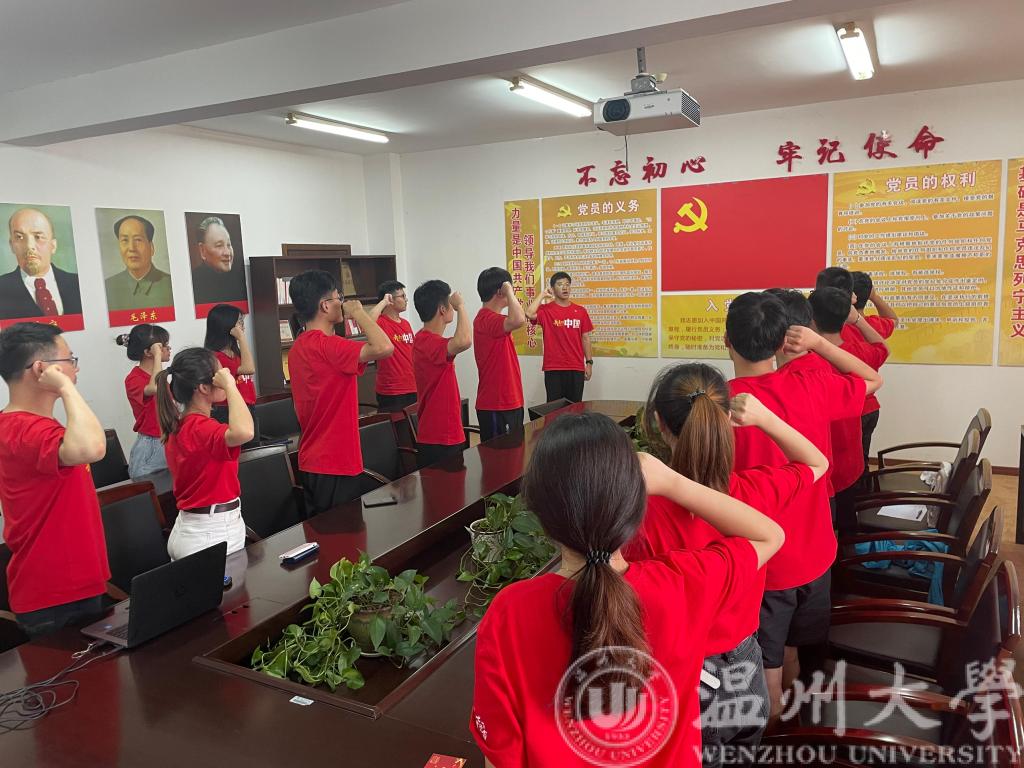 入党誓词是行动指南,是共产党人的座右铭,不断重温,终身践行,前进路上,对照承诺,时时检视自我,不断校正航向,方能行稳致远。想想精气神有没有减弱,查查警觉性有没有降低,看看脚下路有没有走歪……不断重温的意义,正在于此。在温州大学优秀党员、研究生第一党支部书记的张振慧同学的带领下,全体党员一起高举右手,面对鲜红的党旗,再次庄严宣誓:“我志愿加入中国共产党……随时准备为党和人民牺牲一切,永不叛党。”铿锵恢宏的誓词,强烈震撼着在场的每一位党员,一字一句,神圣而豪迈,铮铮誓言,体现了党员同志们对中国共产党的无限忠诚,坚定了入党使命,奋斗初心。