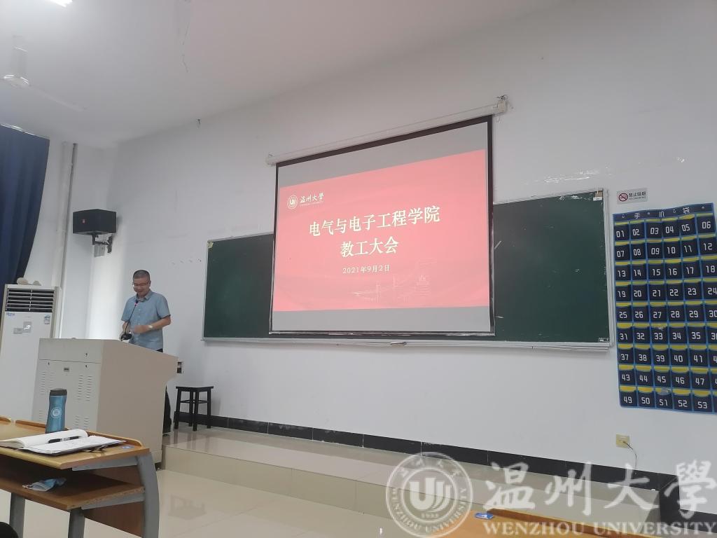 9月2日下午,博彩平台 在1B402召开全体教职工大会暨理论学习会。会议由博彩平台 党委书记李方强主持,全院教职工参加会议。