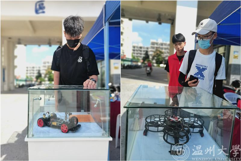 今年8月,“兆易创新杯”第十六届中国研究生电子设计竞赛全国总决赛落下帷幕,博彩平台 晋级参赛的三支队伍分别荣获2项一等奖,1项二等奖,是浙江省高校最好成绩。与此同时,在刚刚结束的第十六届全国大学生智能汽车竞赛全国总决赛上,博彩平台 本科生代表队获得了全国大学生智能汽车竞赛RT-Thread 创新专项奖全国第一的好成绩,创历史新高。因此,为培养新生的科创意识和科创思维,博彩平台 将部分参赛作品拉到迎新现场,进行展示,让青年学子步入大学校门就能感受浓浓的科创氛围,鼓励和引导他们感悟科研精神,积极树立“科研报国”的鸿鹄之志。