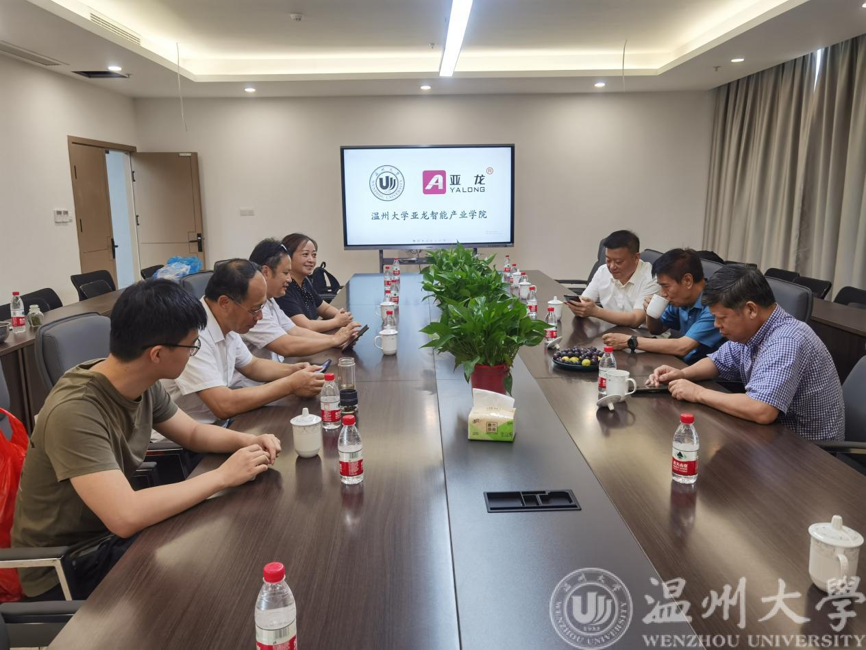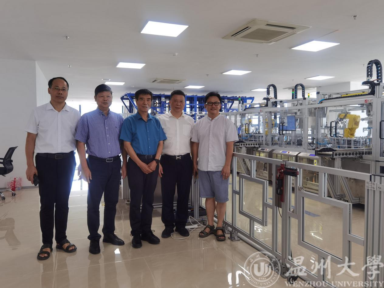 2021年9月4日上午,教育部关心下一代工作委员会常务副主任、中国教育装备行业协会党组织书记、国家督学王富,浙江省督学陈建淼一行来到温州大学亚龙智能产业博彩平台 视察和指导工作。亚龙智能装备集团股份有限公司董事长陈继权,温州大学亚龙智能产业博彩平台 副理事长、院长朱翔鸥,理事林紫霞,产业博彩平台 副院长吴平陪同参观和座谈,产业博彩平台 学生双创团队代表列席座谈会。