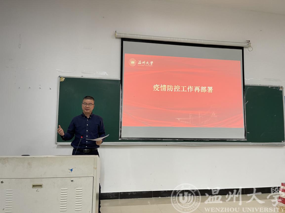 李方强书记对疫情防控工作进行再部署,特别强调了接种疫苗的必要性,提醒所有教师坚持每日健康打卡。其他分管领导也对相关工作进行了部署,包括教学工作、2022年学科科研工作主线等。
