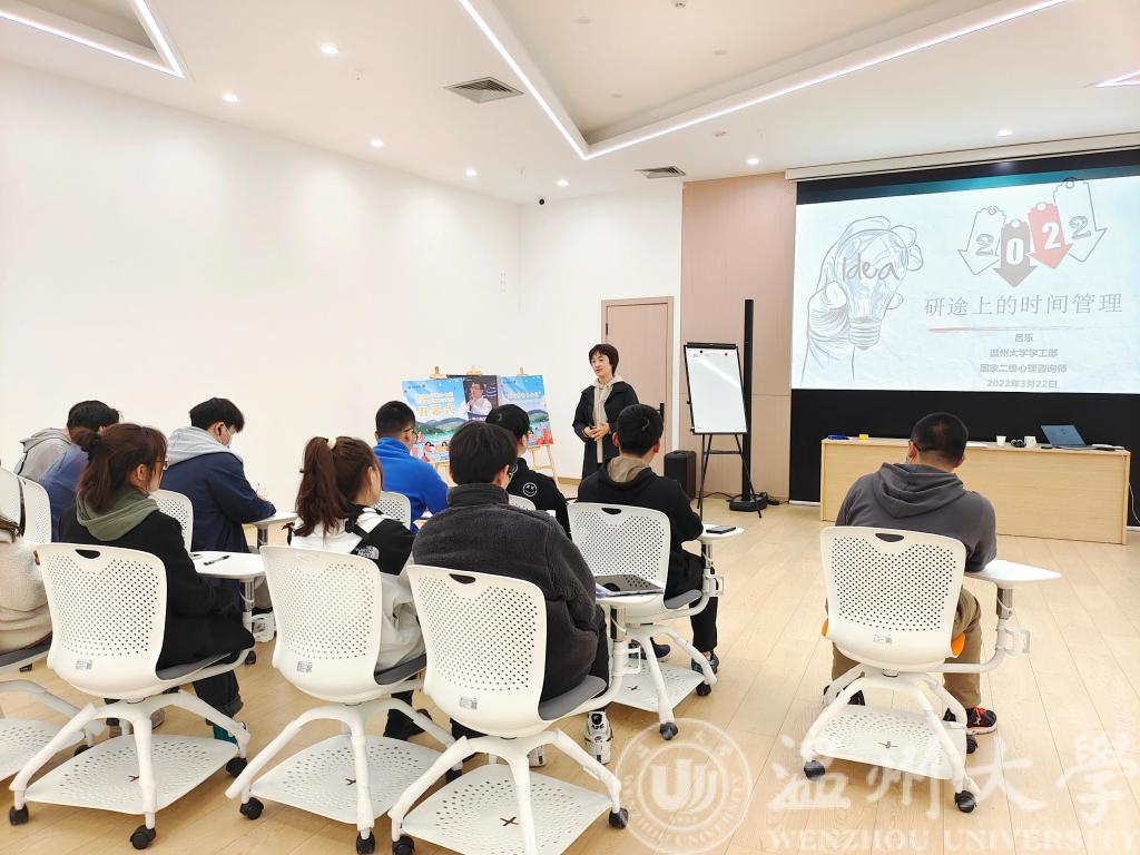 为帮助博彩平台 考研学子合理规划考研时间,提高学习效率,帮助学生掌好考研的“舵”,以免梦想小船“偏航”,3月23日晚,博彩平台 特邀学生工作部副部长,国家二级心理咨询师吕乐在大学生活动中心幸福工坊为2023届考研学子带来“幸福时间管理”讲座。