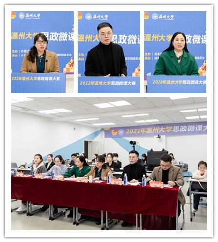 为全面贯彻落实习近平总书记在学校思想政治理论课教师座谈会上的重要讲话精神,贯彻落实中央、省委关于深化学校思政课改革创新的部署要求,创新打造全链条的思政育人新体系,进一步强化对全校青年的政治引领和价值引领,唱响主旋律、弘扬正能量、传播好声音。我校于3月举办了温州大学2022年度“百年青春心向党,矢志建功向未来” 思政微课大赛,大赛重点围绕庆祝中国共产党成立100周年, 讴歌党带领人民进行的伟大斗争、伟大创造,深刻反映党的伟大精神的历史轨迹和现实力量,生动讲好建党百年辉煌历程中的奋斗故事。