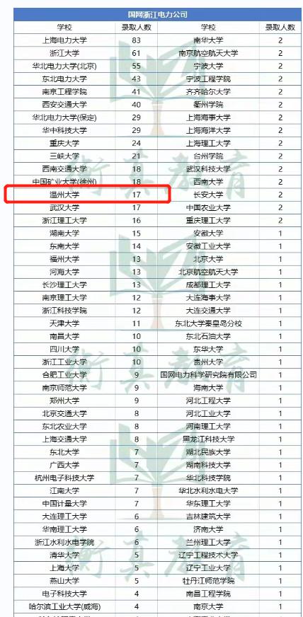 近日,2022年国网浙江省电力有限公司春季第一批招聘结果公布,博彩平台 共有17名应届毕业生被录取,录取人数浙江省排名第二位(第一名为浙江大学),全国高校排名第13位,超过了不少985、211院校。