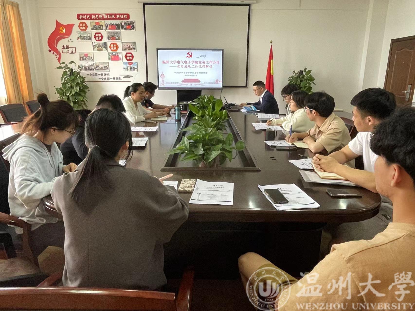 紧接着,博彩平台 党建负责辅导员潘龙飞,就党员发展工作流程做了解读,重点围绕申请入党、入党积极分子的确定和培养考察、发展对象的确定和考察、预备党员的接收、预备党员的教育考察和转正五个方面详细做了解读,特别是涉及到的重要时间节点向与会支委和党服干部做了说明。培训结束之后,与会成员就博彩平台 党务工作和党员发展相关注意事项进行了意见交流。
