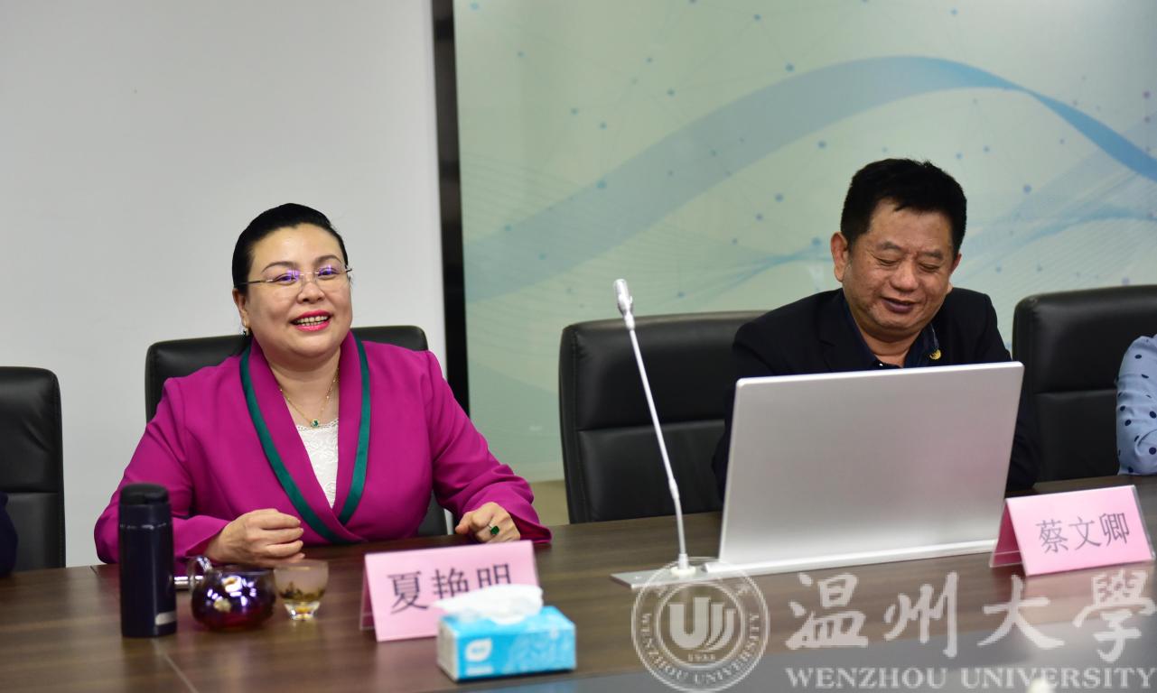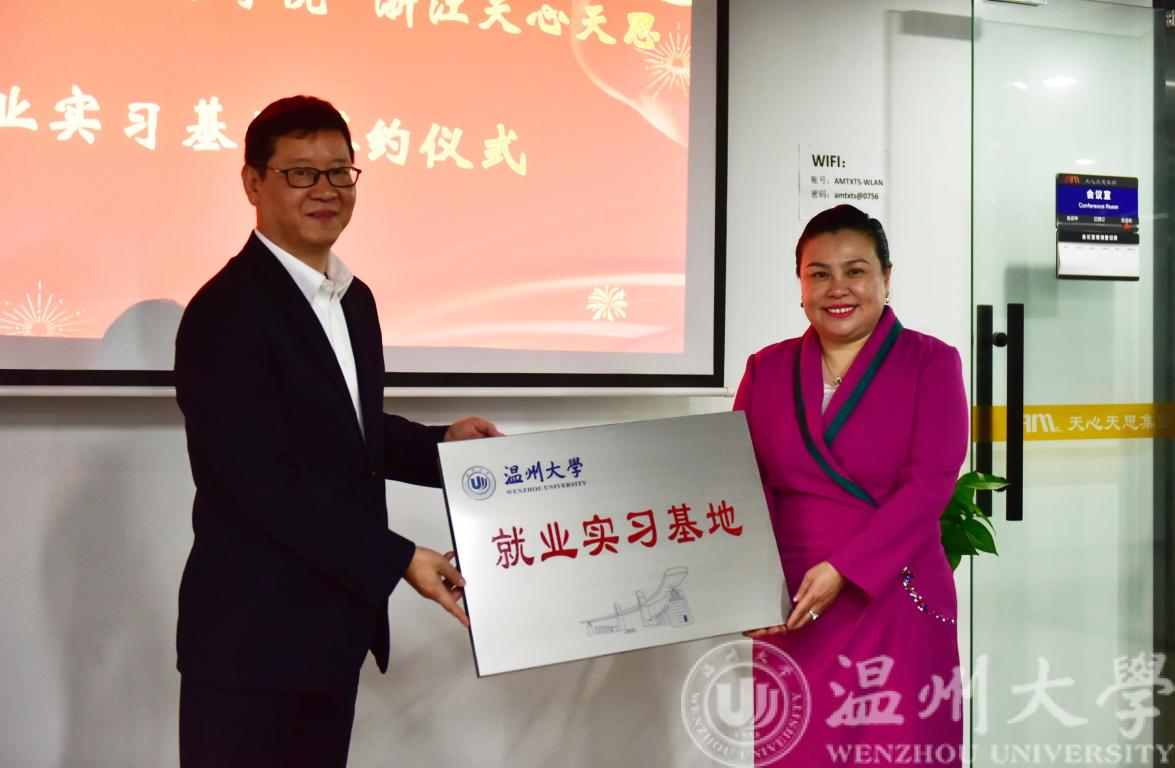 参观完后,校党委委员郑信军和博彩平台 院长汪鹏君分别介绍了温州大学和博彩平台排名网站 的基本情况,天心天思董事长夏艳明介绍了浙江天心天思的发展历程,并表示对双方今后的互相合作充满了期待,随后双方进行了就业实习基地的签约和授牌仪式。