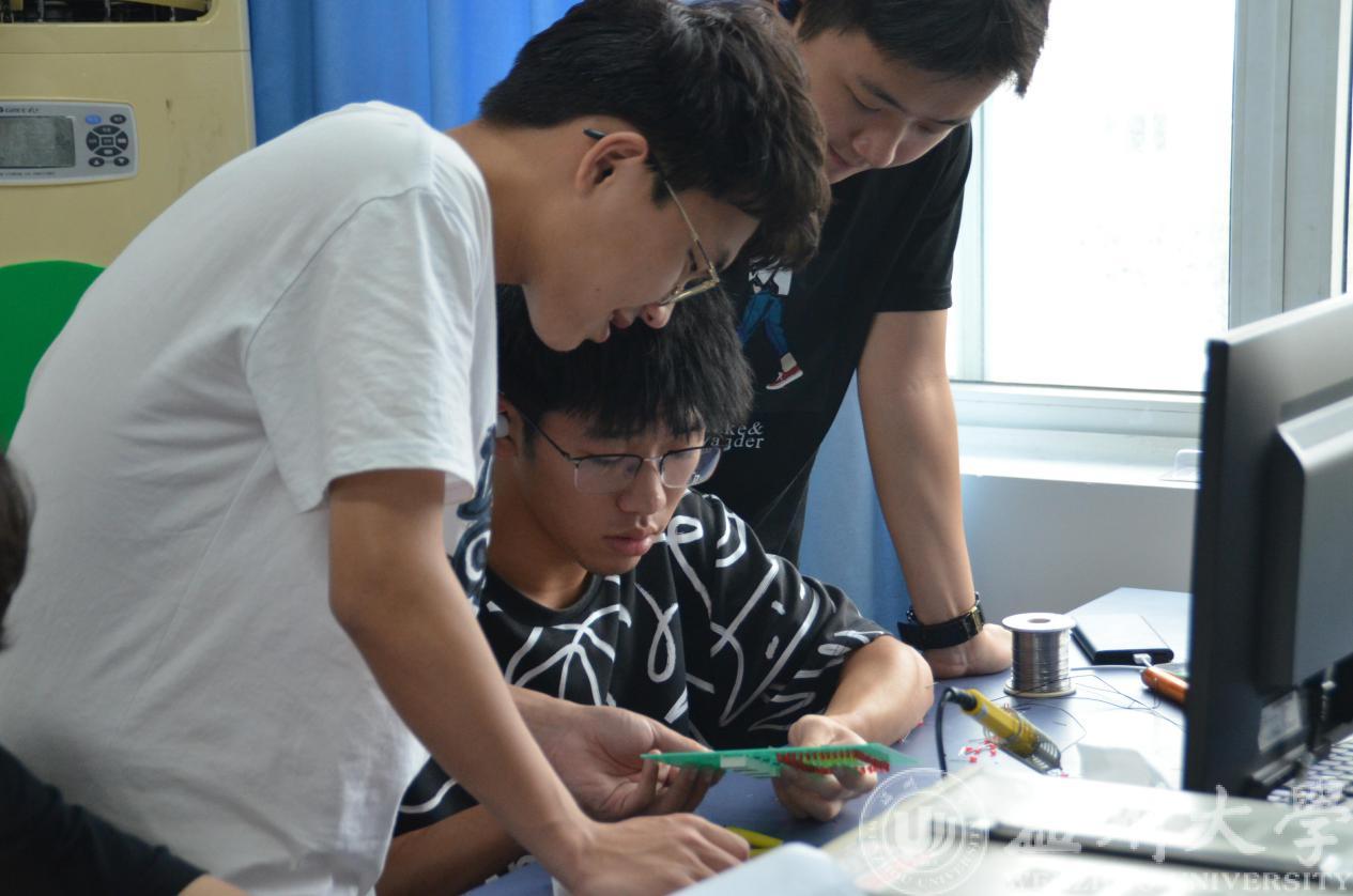 比赛最后,博彩平台 陈崇巨老师和陈冲老师对同学们的作品进行仔细的评审。两位老师高度赞扬了同学们的设计思路,对其设计中的优点进行了表扬,同时也指出了同学们在焊电路过程中的一些问题,鼓励同学们今后更加仔细、认真。经过两位老师的专业评审,最后共有3支队伍荣获一等奖,6支队伍荣获二等奖,6支队伍荣获三等奖。