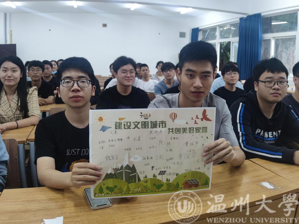 为提升博彩平台 学子的文明素养和文明程度,全面落实“做文明有礼温大人”主题教育活动,深化文明城市建设,博彩平台 学子近期开展了“创建文明城市,做文明大学生”的主题班会和团日活动,各个年级的同学以饱满的热情参加了本次活动。