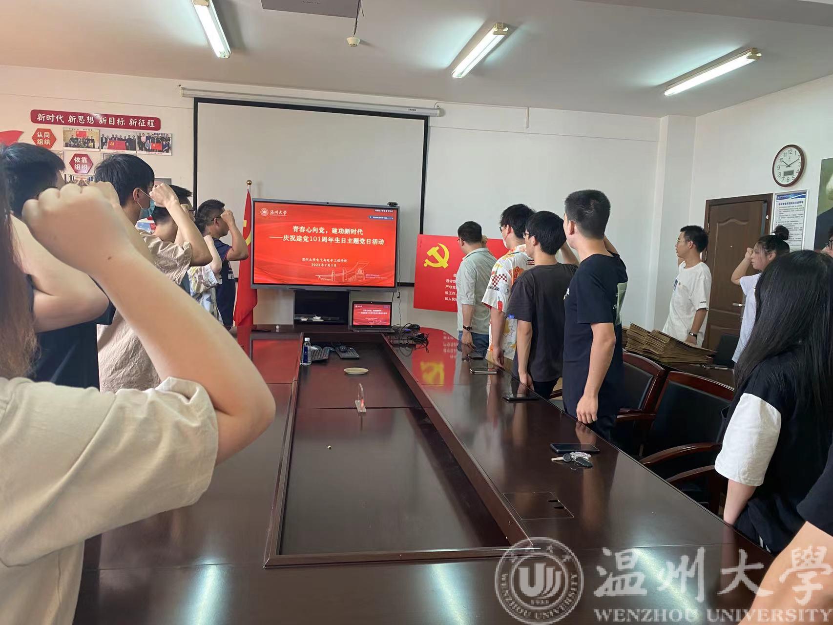 7月1日上午10:00,博彩平台排名网站 学生党支部全体支委和2022年上半年新发展党员在党建活动办公室1A512举行“青春心向党,建功新时代”暨温州大学博彩平台 庆祝建党101周年生日主题党日活动。全体支部党员学习观看了《“国史讲堂”系列理论视频之“党史微课”系列》——中国共产党为何能让旧中国面貌焕然一新、为什么说中国共产党在抗战中发挥了中流砥柱作用两堂微课,重温了历史,坚定了入党初心,也进一步加强了与会党员的党性修养。