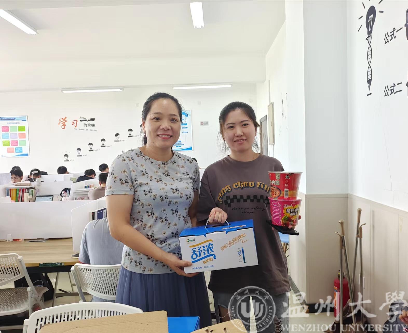夏日炎炎,骄阳似火。暑期两个月是考研学子备考的关键阶段。为缓解考研学子学习压力,增强考研信心,7月5日上午博彩平台 党委副书记曾蓓蕾、辅导员潘龙飞、陈海彤到博彩平台 考研自习室走访慰问暑期考研留校学生,并分发暑期考研慰问品。