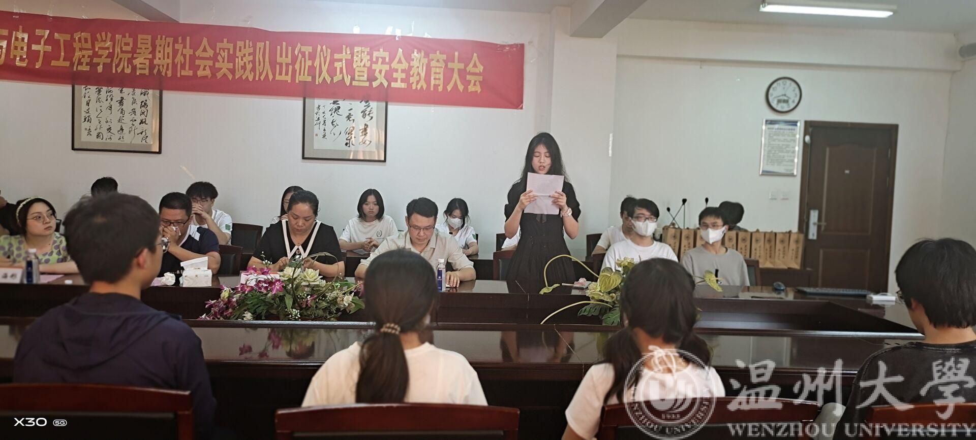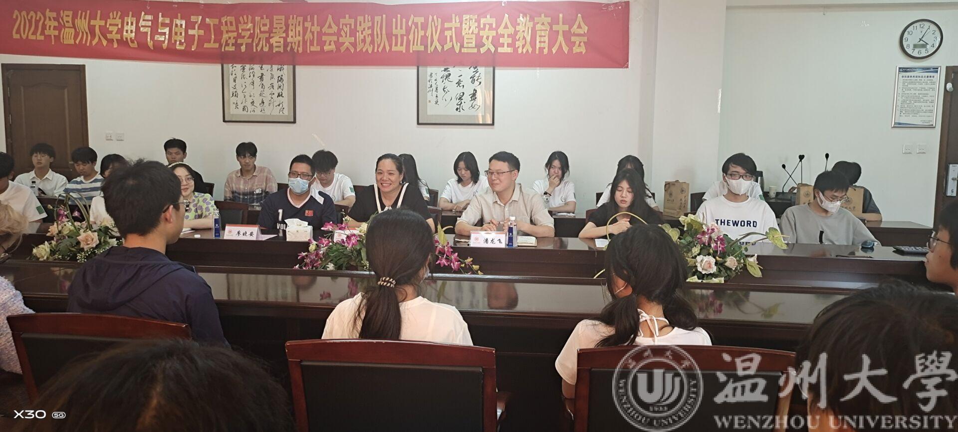 2022年博彩平台排名网站 暑期社会实践队出征仪式暨安全教育大会于七月一日下午三点三十分在博彩平台 1A502召开。本次仪式由博彩平台 辅导员潘龙飞老师主持,本会议是线上线下同时进行,参与此次会议的还有博彩平台 党委副书记曾蓓蕾老师,博彩平台 学工办主任、团委书记廖晓安老师,博彩平台 辅导员陈海彤老师以及各实践队代表。