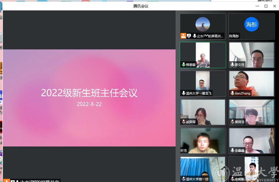为进一步完善新生班级的管理制度,做好迎接新生准备工作,8月22日上午10:00,博彩平台 组织召开2022级新生班主任工作会议,院党委副书记曾蓓蕾,学工办主任、团委书记廖晓安,全体2022级本科生、研究生班主任和学工办辅导员参加了此次会议。会议由学工办主任、团委书记廖晓安主持。
