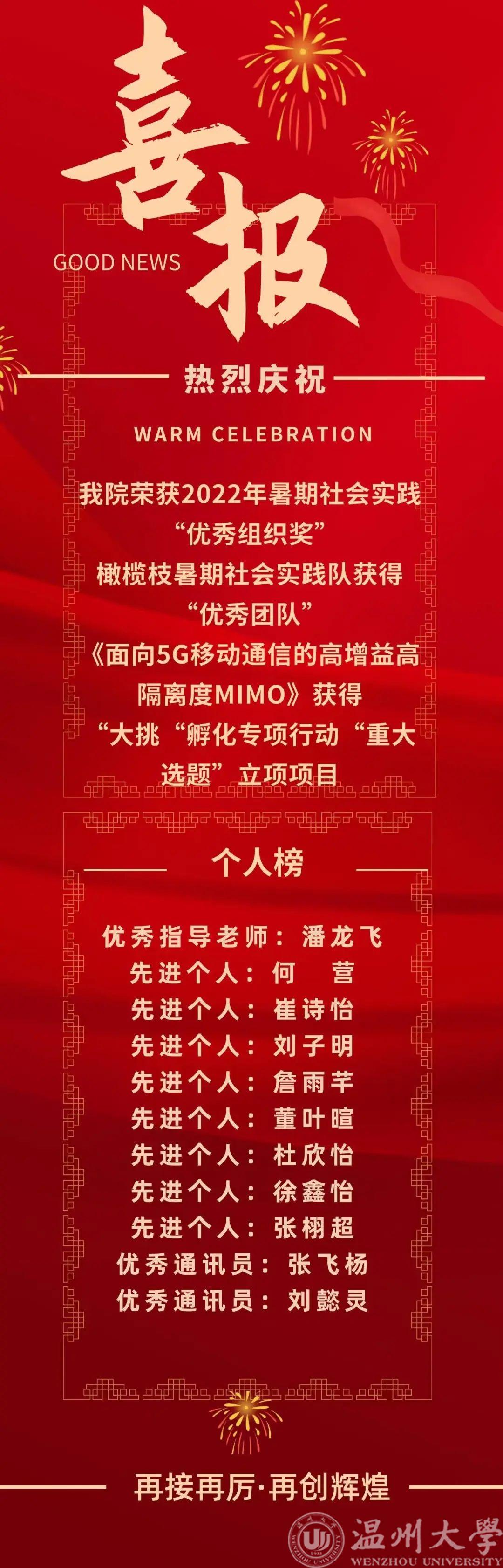 为贯彻落实习近平总书记关于青年工作的重要思想,持续深入推进“双百双进”活动,积极助力我省“高质量发展建设共同富裕示范区”,以优异表现庆祝中国共青团成立100周年,促进全面育人。博彩平台 暑假开展了以“喜迎二十大、永远跟党走、奋进新征程”为主题的实践活动,此次活动博彩平台 荣获佳绩,硕果累累。