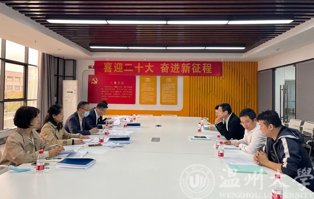 根据《共建温州大学乐清工业研究院协议书》,2022年10月28日,由乐清市科技局牵头,乐清市财政局、乐清市经信局、乐清市委人才办等单位相关业务负责人组成考核组,对温州大学乐清工业研究院开展年度(2021.6-2022.5)考核工作。研究院院长林振权向考核组汇报年度工作绩效。