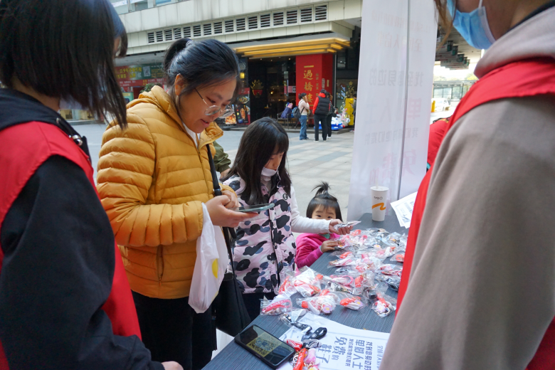 活动当天,志愿者们早早就将活动物资搬到现场、布置活动场地并发放宣传单。活动一开始,便吸引了很多路人的驻足。一开始大家对“单脚鞋银行”这个标题就感到陌生。志愿服成员们细心地介绍了“单脚鞋银行”这个项目。在项目成员积极宣传之后,来到摊位上的人络绎不绝,有大学城的大学生们,也有路过的老师、社区的居民,甚至还有小朋友也想参与到我们的活动中来。活动现场,每位积极转发寻人启事海报的爱心人士都可获得一只精美的鞋子吊坠纪念品。