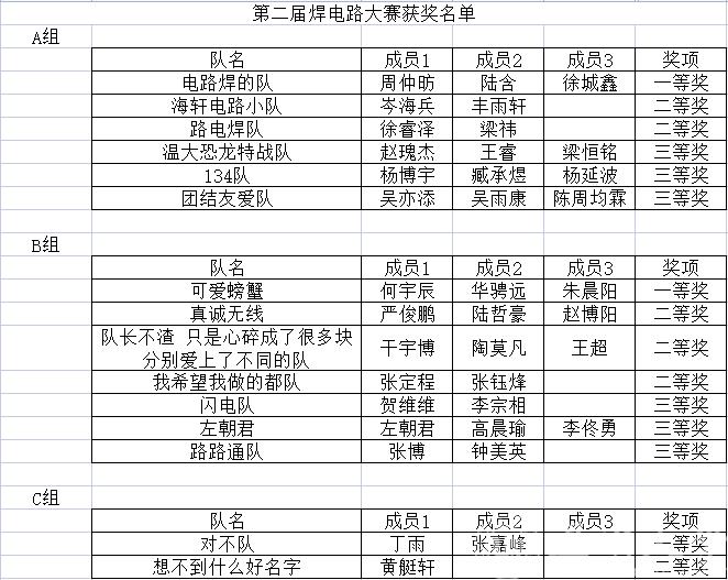 5月29日,博彩平台 第二届焊电路大赛圆满落幕。经过博彩平台 专业老师的评审,比赛结果已经确定,现公布如下:
